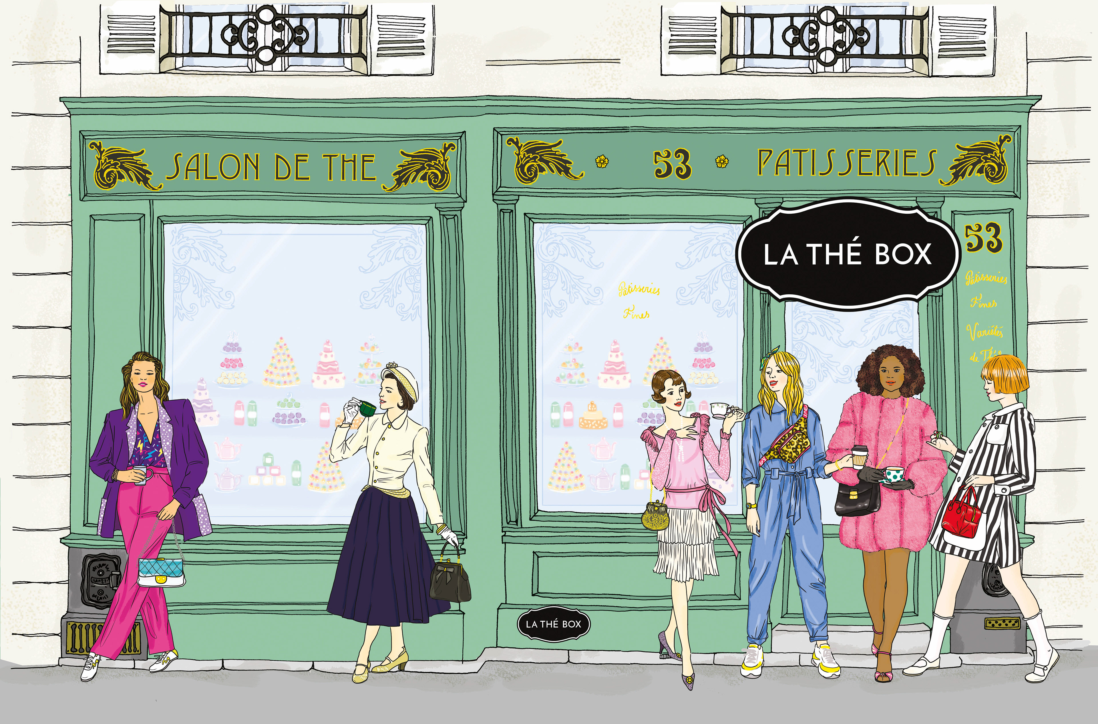Création de la Fashion Tea Box, illustrée de silhouettes iconiques à travers les époques, pour savourer le thé avec style.