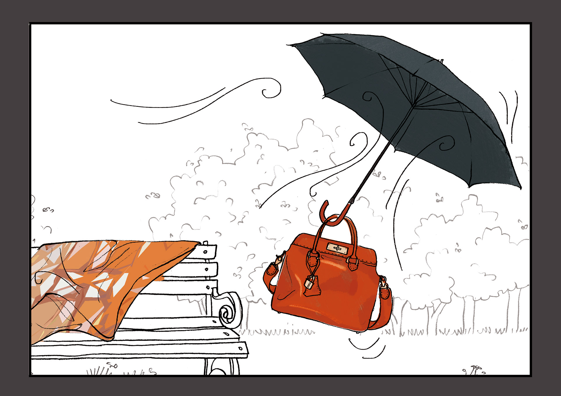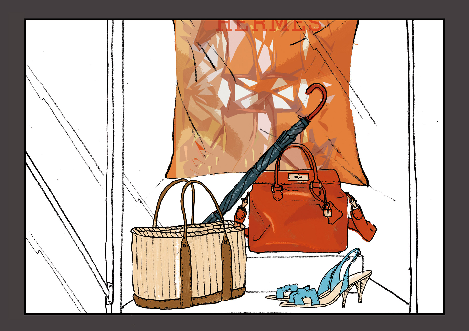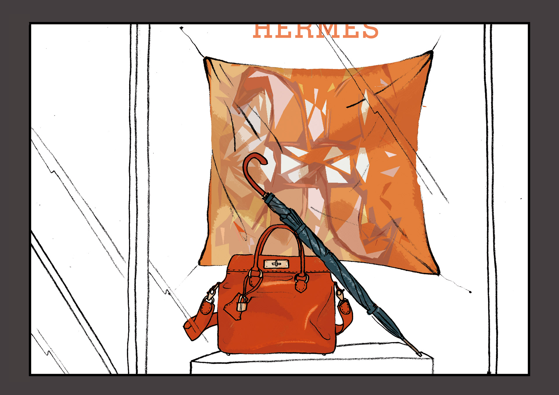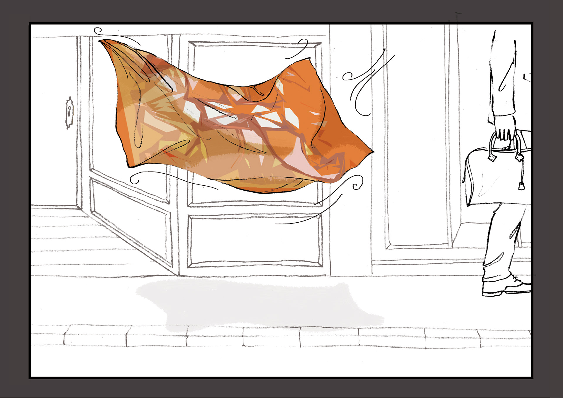 A series of quick illustrations bringing to life the storyboard for a poetic and distinctive advertising campaign, envisioned by the iconic house Hermès.