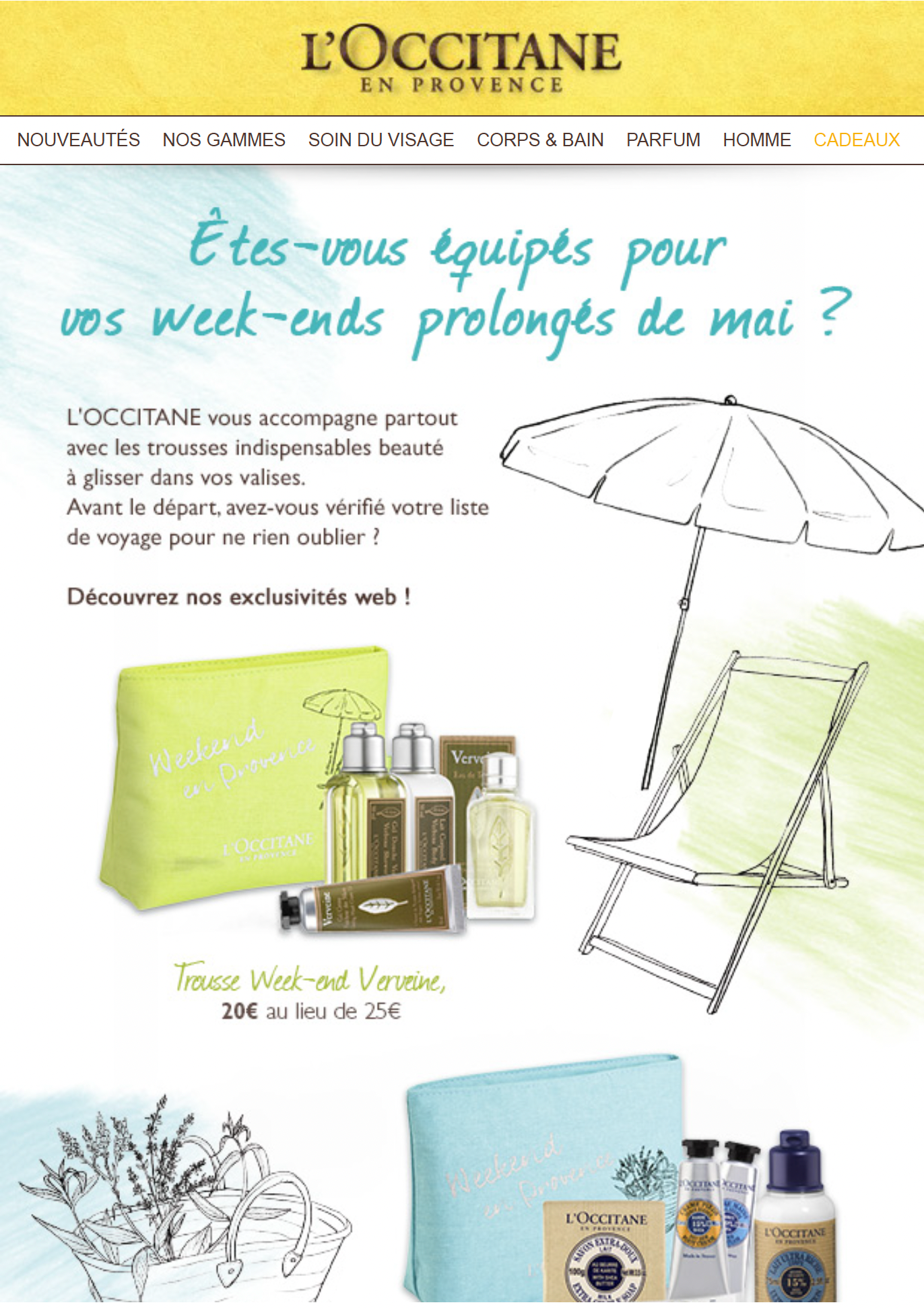 Utilisé sur des trousses de voyage et dans leur newsletter pour accompagner les essentiels beauté en été.