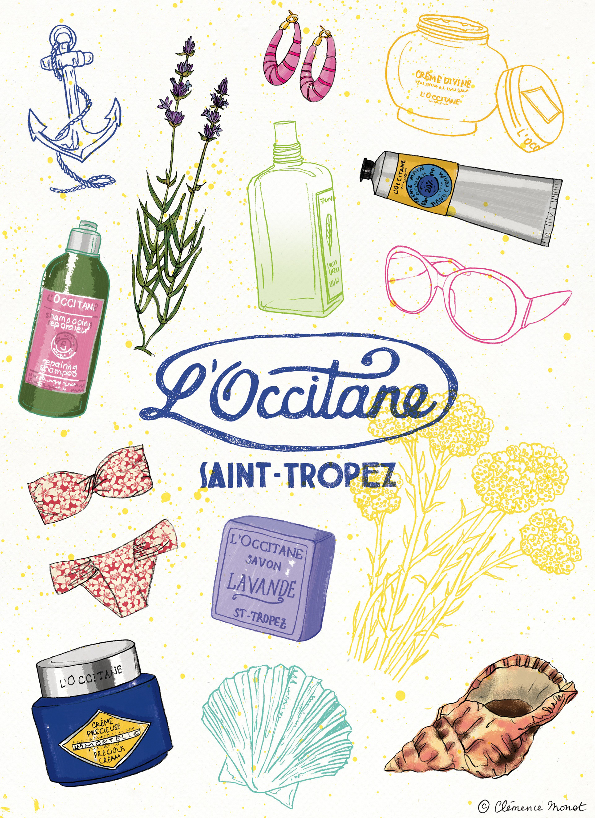 Illustrations created for the “L’Occitane on Holiday in Saint-Tropez” event.