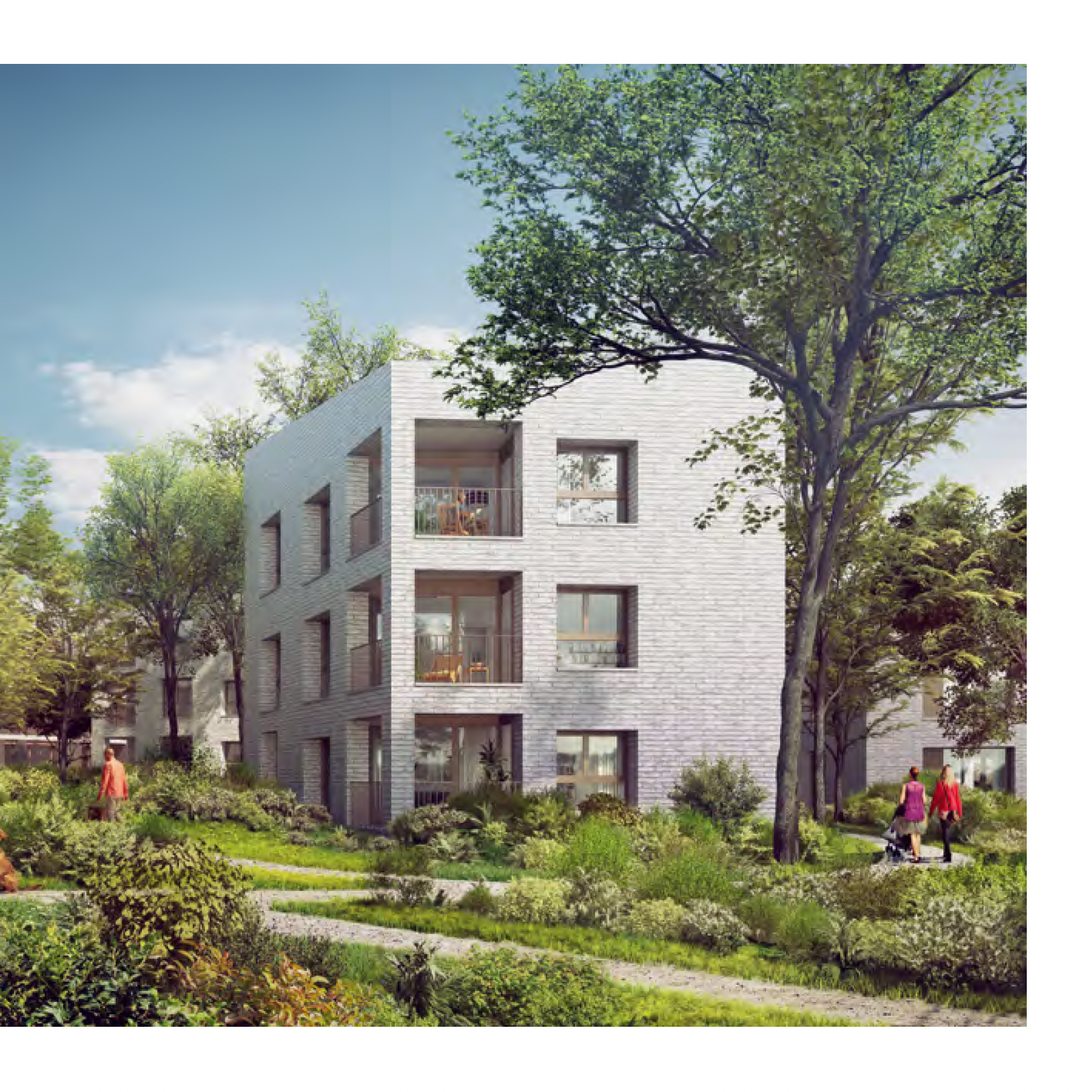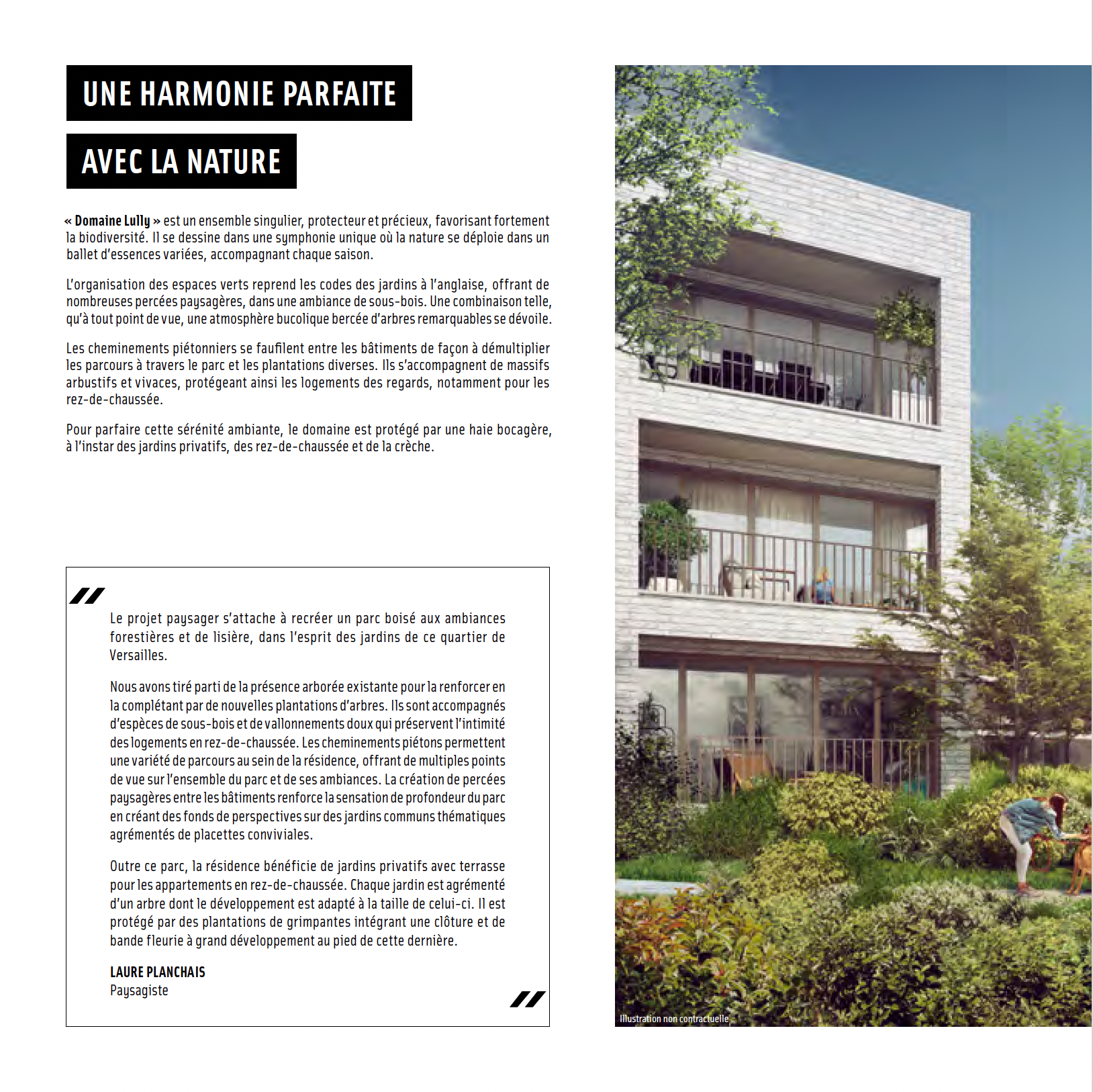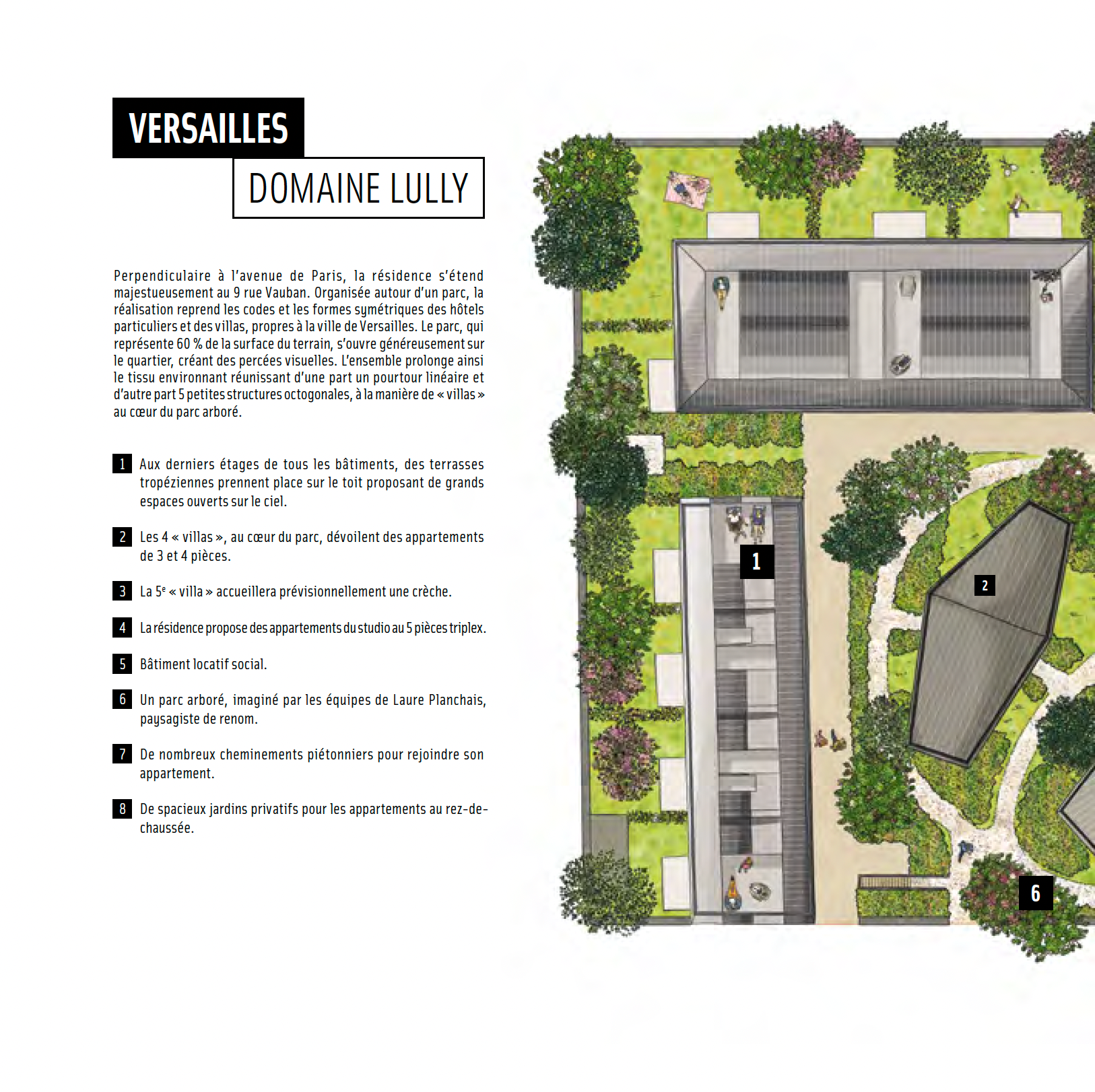 Creation for OGIC Immobilier's magazine, of a top-view illustrated plan depicting a future residential complex set in a landscaped park in Versailles.